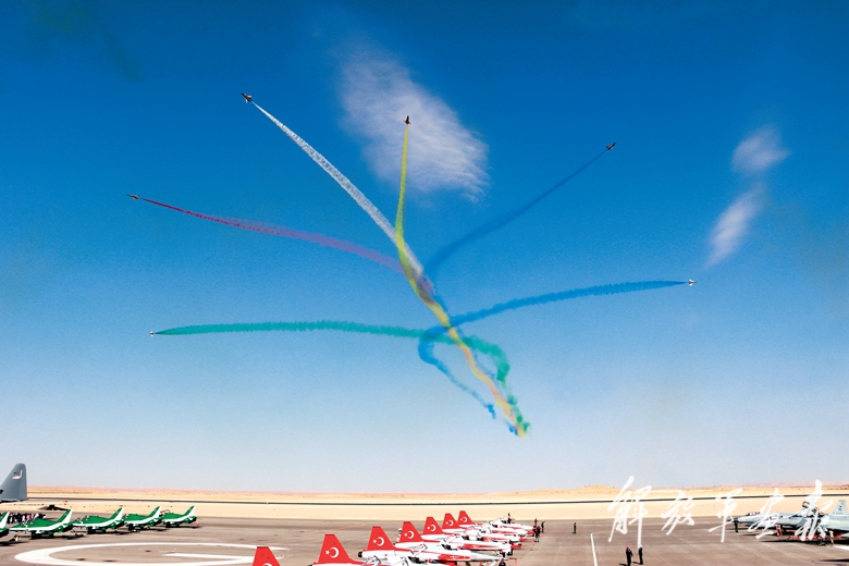 空軍八一飛行表演隊參加第二屆沙特國際防務(wù)展,展現(xiàn)中國“藍(lán)天儀仗隊”風(fēng)采。