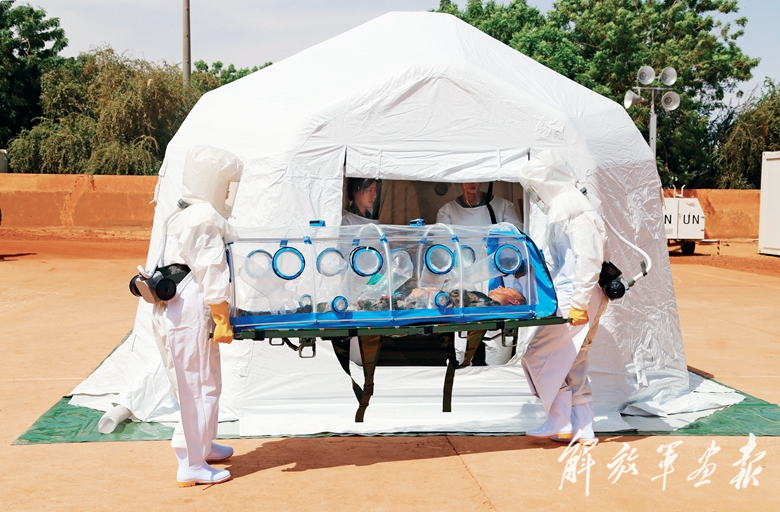 2014年10月13日,第2批赴馬里維和醫(yī)療分隊組織埃博拉疫情防控演練。
