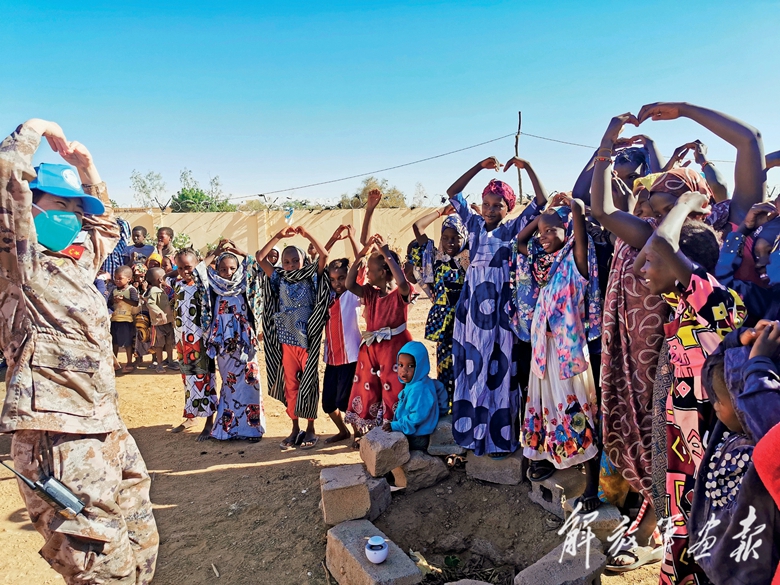 2022年11月10日,第10批赴馬里維和醫(yī)療分隊隊員與加奧市孤兒院的孩子們聯(lián)歡。