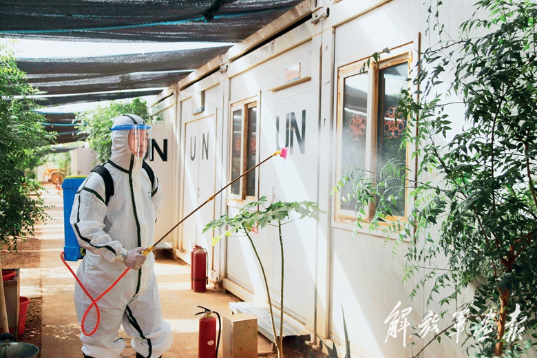 2019年4月17日,第6批赴馬里維和醫(yī)療分隊隊員對營區(qū)進行消殺。