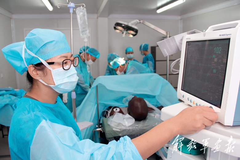2014年5月18日,首批赴馬里維和醫(yī)療分隊隊員對患者進行麻醉監(jiān)護。
