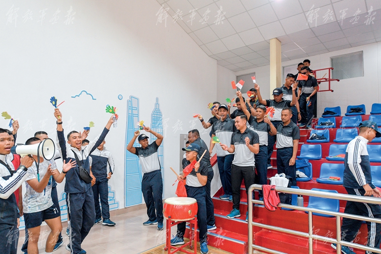 志合者,不以山海為遠。“畢瑪蘇吉”號風帆訓練艦訪問期間,兩國海軍官兵結下深厚友誼?;@球場上,中印尼雙方隊員混編成組進行友誼賽,兩軍官兵共同敲響鑼鼓,為參賽隊員加油助威;風帆訓練艦甲板上,雙方官兵圍繞桅桿進行細致交流。印尼海軍官兵介紹,桅桿從前到后分別用印尼語命名為“力量”“指揮”“勇氣”,在用以區(qū)分的同時也對學員進行著引導和鼓舞。