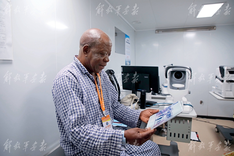 在眼科診室里,姆福圖不時用手上的毛巾擦拭眼角,另一只手緊緊攥著一個信封。按照醫(yī)生的提示,姆福圖摘下墨鏡,露出泛白的雙眼。“雙眼白內障,伴有左眼皮脂腺增生。請您先去做檢查,然后入院準備手術?!甭犕暄劭漆t(yī)生的話,姆福圖用漢語字正腔圓回復道:“明白。”