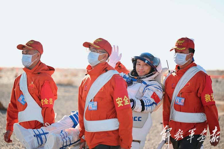 現(xiàn)場醫(yī)監(jiān)醫(yī)保人員確認(rèn)航天員湯洪波、唐勝杰、江新林身體狀態(tài)良好。