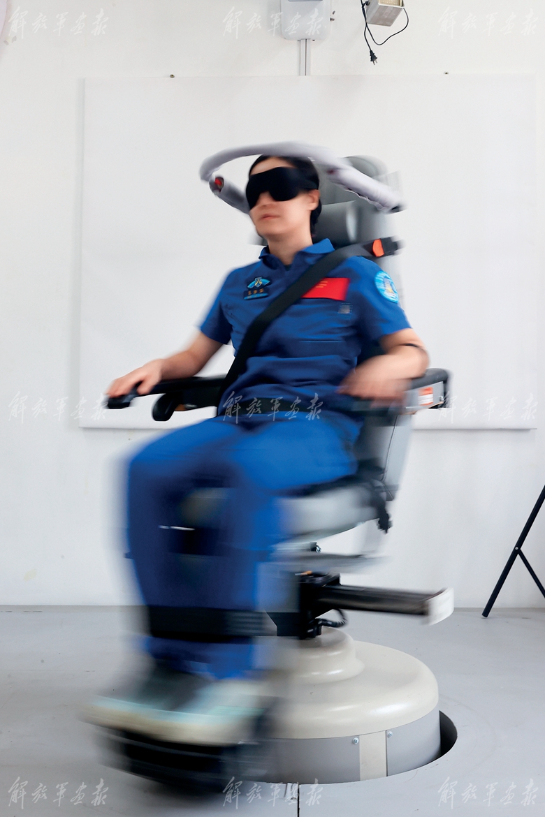 神舟十九號(hào)航天員王浩澤進(jìn)行轉(zhuǎn)椅訓(xùn)練。(攝影/徐 部)