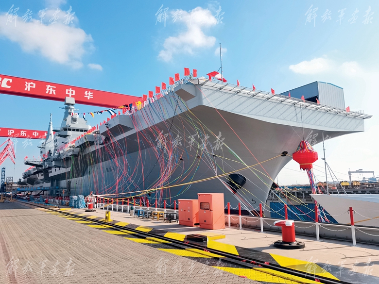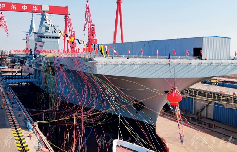 海軍076兩棲攻擊艦首艦下水命名儀式現(xiàn)場(chǎng)。