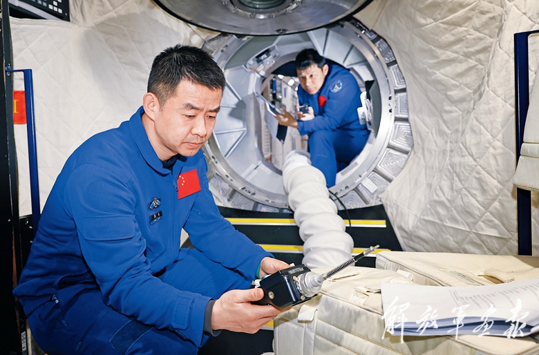 神舟二十號航天員王杰進(jìn)行工效學(xué)試驗(yàn)。(攝影/徐 部)