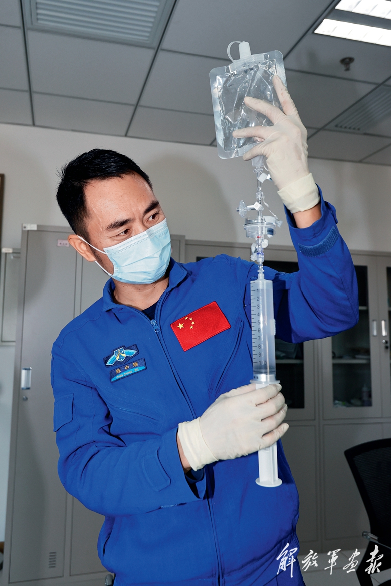 神舟二十號航天員陳中瑞進(jìn)行醫(yī)學(xué)樣品制備訓(xùn)練。( 攝影/徐 部)