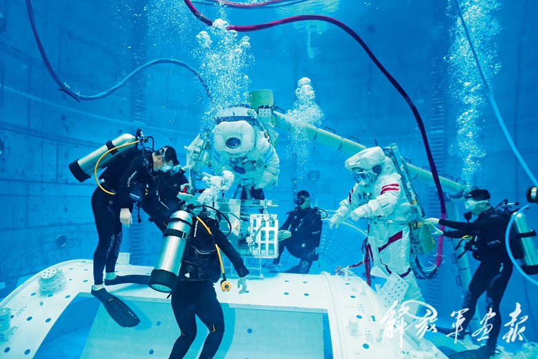 神舟二十號航天員進(jìn)行水下訓(xùn)練。(攝影/徐 部)