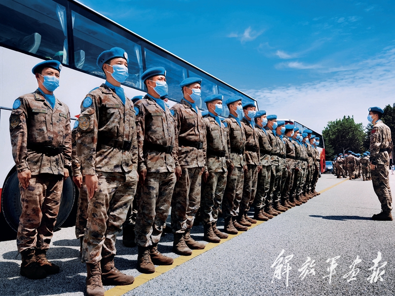 以最短時間換裝集合完畢,官兵向候車區(qū)走去。雖然剛剛經(jīng)歷近25個小時的長途旅程,但官兵依然以昂揚的精神狀態(tài),回應(yīng)著周圍的目光——我們是中國維和部隊!