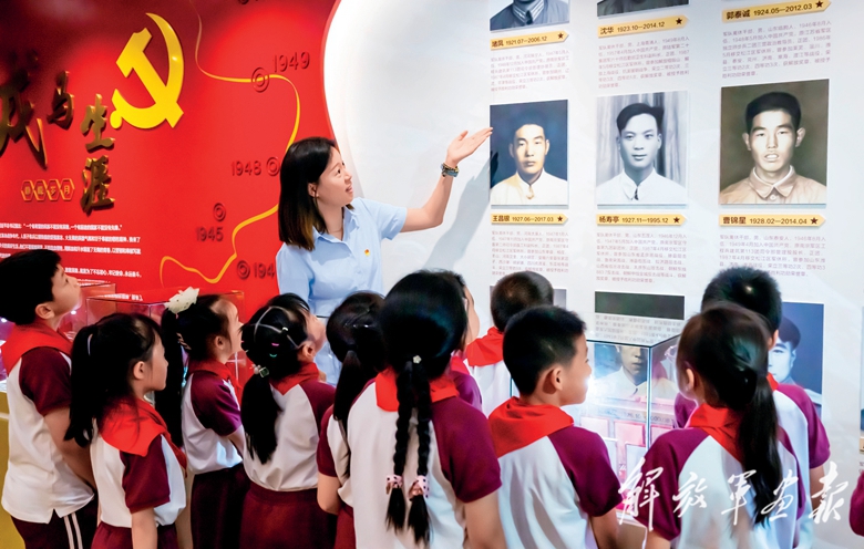 文史館工作人員為前來參觀的小學生講述紅色故事。
