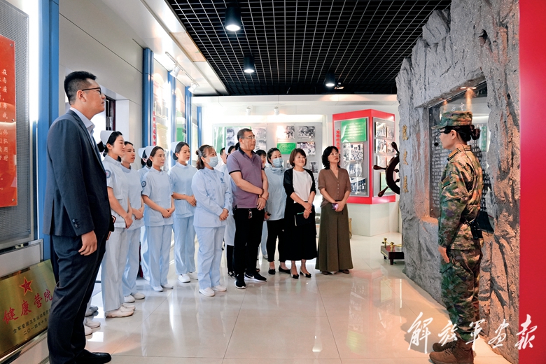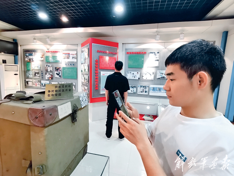 參觀者在院史館傾聽醫(yī)護(hù)人員救護(hù)志愿軍傷病員的戰(zhàn)斗故事。