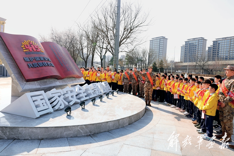 組織駐地學校師生代表到國家安全主題公園參觀見學,官兵為大家普及國家安全知識。