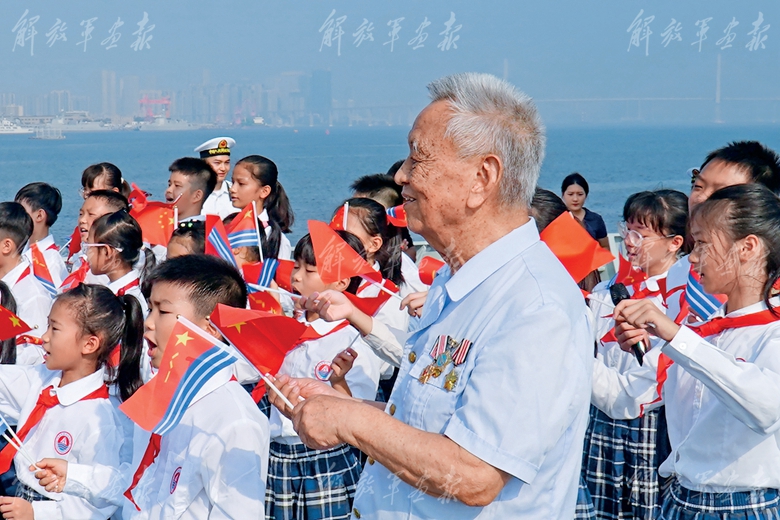 “我和我的祖國,一刻也不能分割……”軍港另一側(cè),來自湛江市第十六小學(xué)的學(xué)生們聚集在湛江艦艦艏,齊聲合唱《歌唱祖國》。孩子們的中間,站著一位戴著軍功章的老人?!拔业那啻?,一直在為了保衛(wèi)祖國的藍(lán)天而戰(zhàn)斗。如今歷史的接力棒交到新一代青年人手中,你們一定要把國家建設(shè)得更加繁榮昌盛?!崩先嗣刑镄烂?,幾乎每次艦艇開放日他都會(huì)到現(xiàn)場,看到人民軍隊(duì)發(fā)展得越來越好,他深感欣慰和自豪。