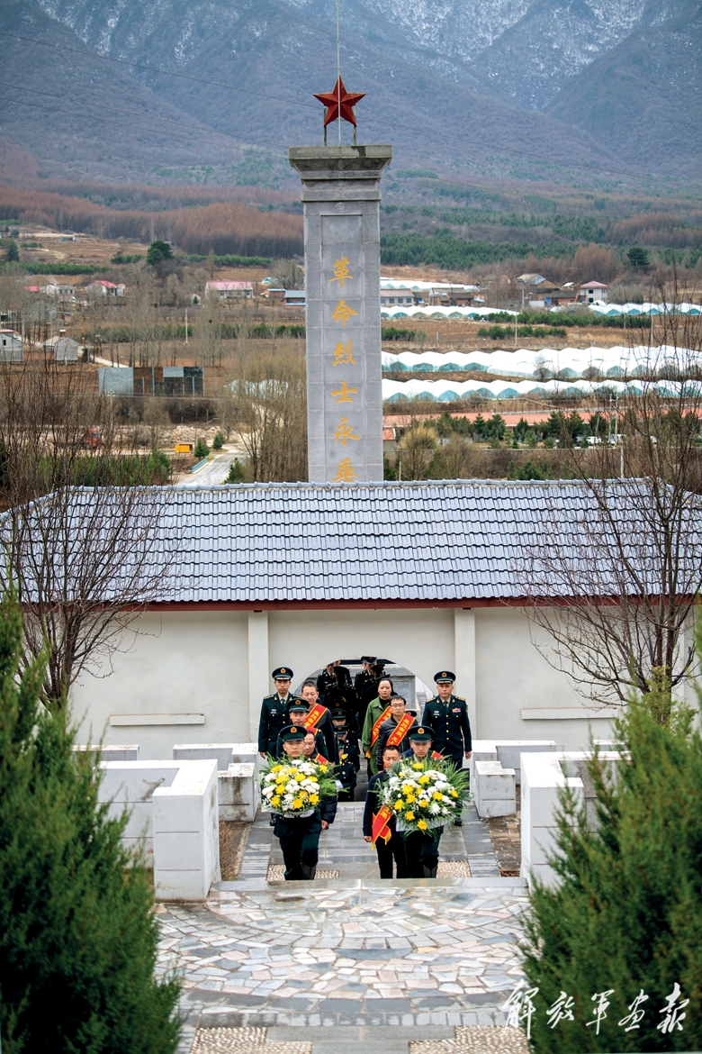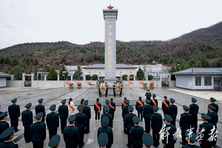 烈士親屬和官兵在烈士陵園深情緬懷英烈。