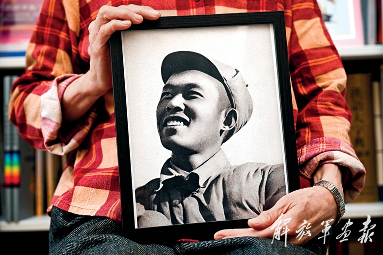 4月14日,在浙江省杭州市,雷燁的親人在家中手捧雷燁烈士抗戰(zhàn)時期的肖像照。