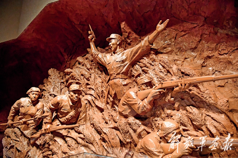 勝利的號角響徹山河,本次展覽的序廳主題雕塑氣勢磅礴。