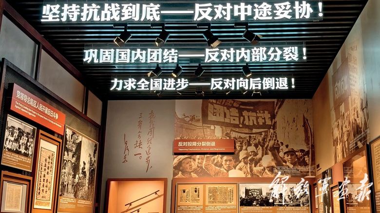 展覽第三部分展示中國共產(chǎn)黨堅定不移站在抗戰(zhàn)最前線,提出和實施持久戰(zhàn)的戰(zhàn)略總方針。