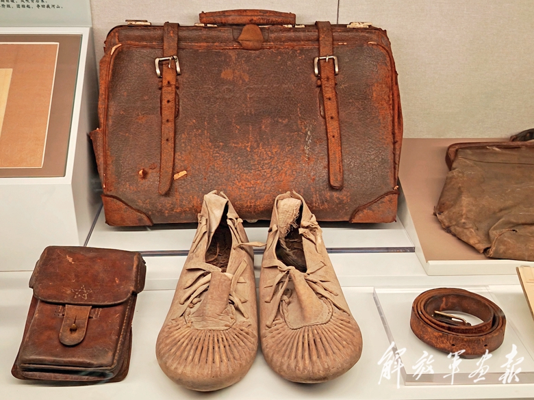 東北抗日聯(lián)軍使用過的鐵叉、皮包、靰鞡鞋。