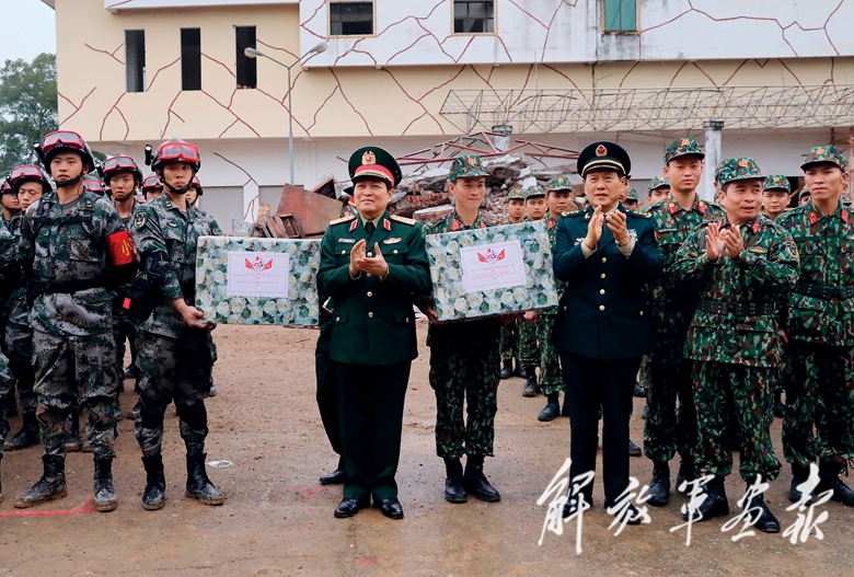 20日,雙方在越南高平省高平市開展交流座談會等系列友好活動、觀摩兩軍災害救援聯(lián)合演練。