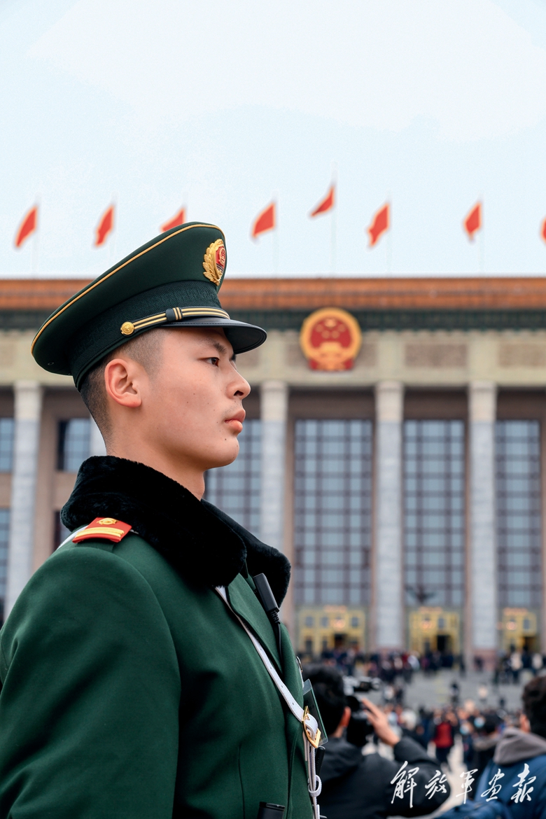 武警戰(zhàn)士在天安門廣場(chǎng)站崗執(zhí)勤。(攝影/記者 王 ?。?/span>