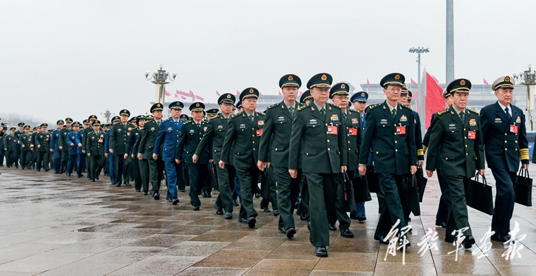 3月4日,全國(guó)政協(xié)十四屆二次會(huì)議在北京人民大會(huì)堂開幕。圖為軍隊(duì)政協(xié)委員走向會(huì)場(chǎng)。(攝影/記者 王 俊)