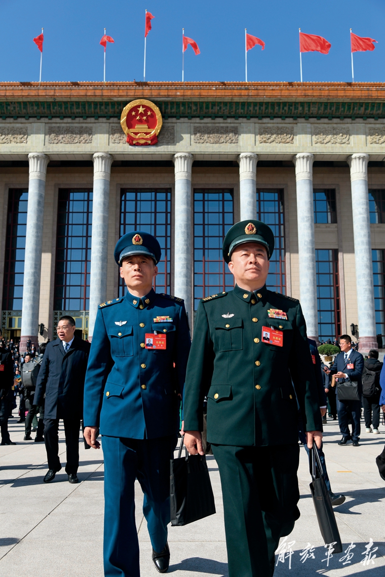 3月8日,十四屆全國(guó)人大二次會(huì)議在北京人民大會(huì)堂舉行第二次全體會(huì)議。圖為會(huì)議結(jié)束后軍隊(duì)人大代表走出會(huì)場(chǎng)。(攝影/記者 王 俊)