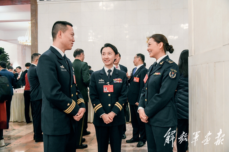3月5日,十四屆全國(guó)人大二次會(huì)議在北京人民大會(huì)堂開幕。圖為軍隊(duì)人大代表相互交流。(攝影/記者 王 ?。?/span>