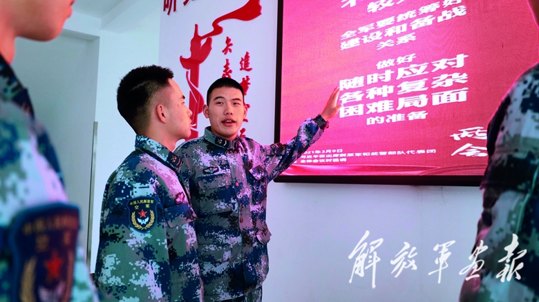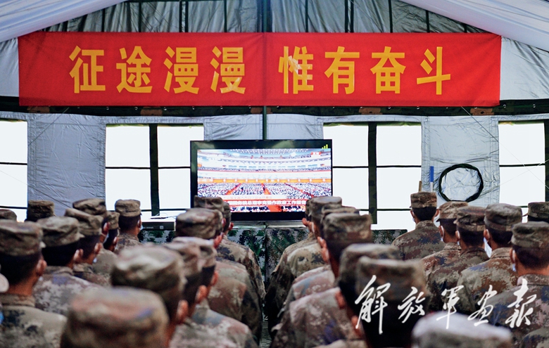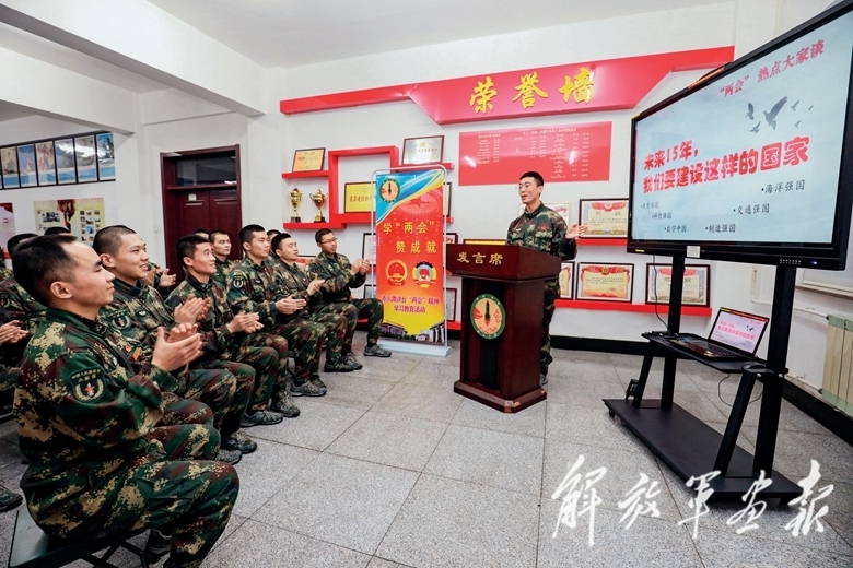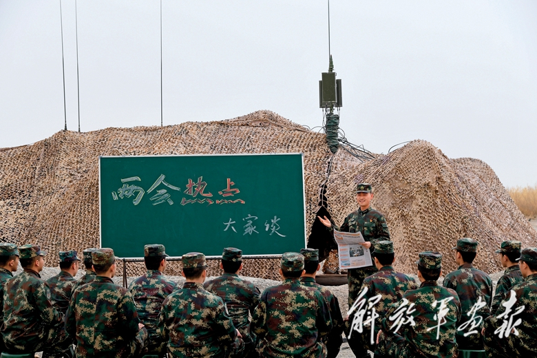 軍營(yíng)連盛會(huì),官兵心向黨。神州大地座座軍營(yíng)春潮涌動(dòng),全軍和武警部隊(duì)官兵以各種形式關(guān)注兩會(huì)動(dòng)態(tài),學(xué)習(xí)兩會(huì)精神,不斷奏響催人奮進(jìn)的樂(lè)章。