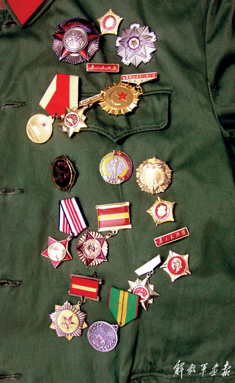 碼放齊整的被褥、幾件軍綠色的衣服、滿柜子的書籍……這些細節(jié)都在提醒人們,這里的主人是一位老兵。多少年來,李延年屋子的陳設(shè)幾乎沒有什么改變。唯一顯著的變化,是墻壁上懸掛了一幅他被授予“共和國勛章”時的照片——