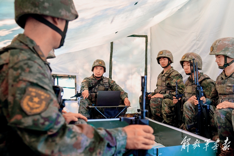 訓(xùn)練中,官兵研究部署行動方案。