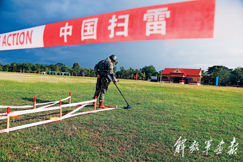 2023年9月,“純凈家園-2023”多國聯(lián)合掃雷行動在柬埔寨舉行。圖為綜合演練中,我方任務(wù)官兵進行信號源探測作業(yè)。(攝影/趙文環(huán))