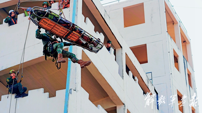 2023年5月16日,解放軍和武警部隊官兵、民兵等應(yīng)急救援力量參加“應(yīng)急使命·2023”高山峽谷地區(qū)地震災(zāi)害空地一體化聯(lián)合救援演習。(攝影/萬端武)
