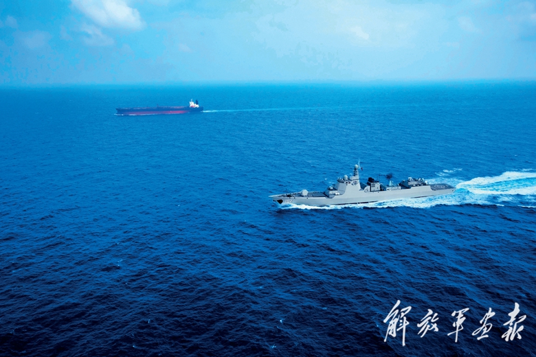 2023年3月9日,海軍第43批護航編隊護送一艘巴拿馬籍油船。(攝影/吳亢慈)
