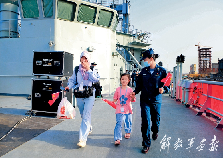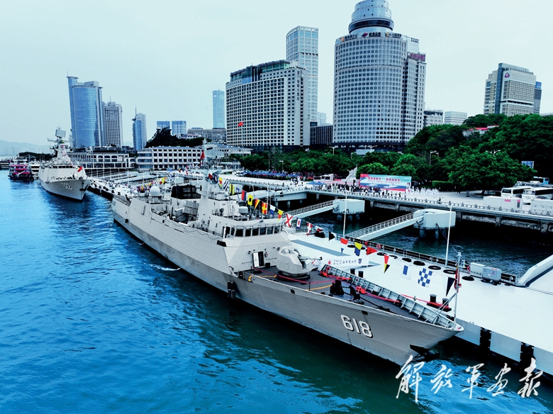2023年4月23日,為慶祝人民海軍成立74周年,海軍在青島、上海、廣州等22座城市舉行軍營開放活動。圖為東部戰(zhàn)區(qū)海軍某護衛(wèi)艦支隊軍營開放日活動中,艦艇在碼頭進行靠泊展示。(攝影/劉再耀)