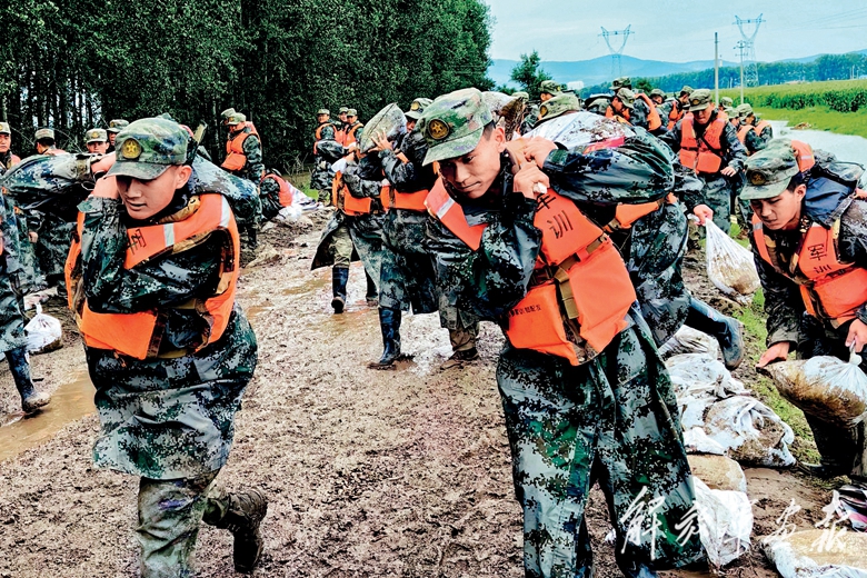 2023年8月5日,陸軍第78集團軍某旅官兵奮戰(zhàn)在齊齊哈爾市碾子山區(qū)抗洪搶險救災(zāi)一線。(攝影/鐵彥男)