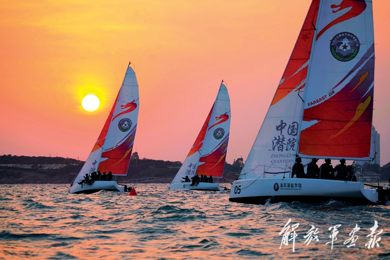 2023年10月16日至21日,第一屆“深藍勇士”國際航海技能競賽暨海軍國際學員周活動在青島舉行。圖為學員進行帆船繞標比賽。(攝影/王永浩)