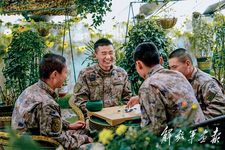 西藏阿里軍分區(qū)大力推進邊防建設(shè),邊關(guān)發(fā)生日新月異的變化。圖為某邊防連官兵在“陽光大棚”內(nèi)休閑娛樂。(攝影/劉曉東)