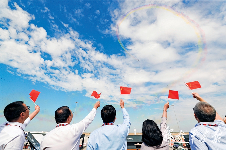 當?shù)貢r間2023年11月13日至17日,第十八屆迪拜航空展在阿聯(lián)酋迪拜阿勒馬克圖姆機場舉行。中國空軍八一飛行表演隊與多國飛行表演隊共舞藍天,展示中國空軍的形象風采。(攝影/朱姜海)