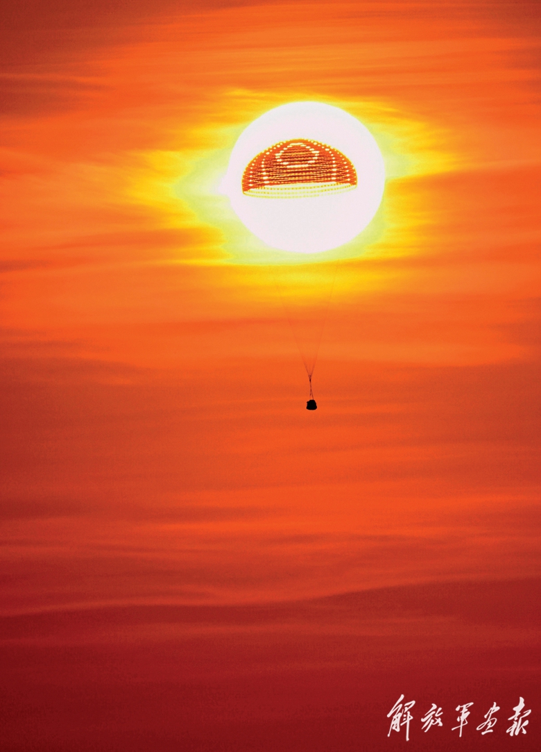 2023年10月31日8時11分,神舟十六號載人飛船返回艙在東風著陸場成功著陸。圖為神舟十六號載人飛船返回艙即將著陸。(攝影/新華社記者 連 振)