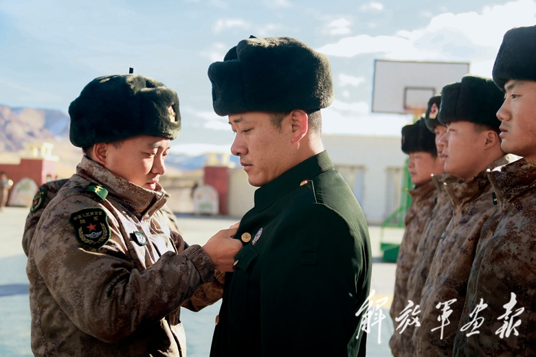 離隊的前一天晚上,蒲存軍帶著自己班里的幾名戰(zhàn)士來到連隊榮譽室,再次重溫連隊被中央軍委授予“雪域高原戍邊模范連”榮譽稱號的光榮歷史,鼓勵他們再創(chuàng)輝煌。