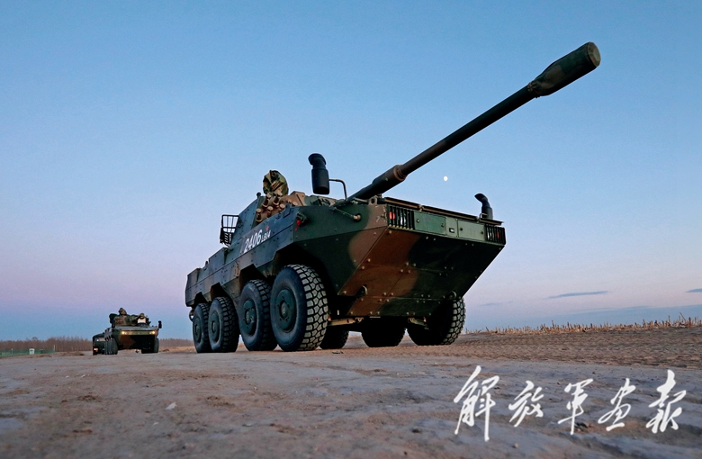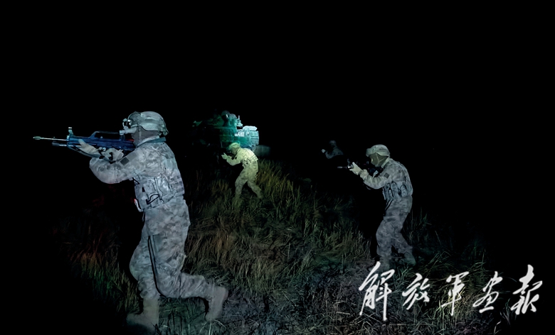 “前方發(fā)現(xiàn)‘?dāng)场b甲車,前出殲滅!”在向作戰(zhàn)地域快速機動途中,官兵突然接到上級命令,各戰(zhàn)斗分隊迅即展開偵察行動,在行進間實施攻擊部署,發(fā)起火力打擊。數(shù)發(fā)炮彈劃破夜空,精準(zhǔn)命中目標(biāo)。