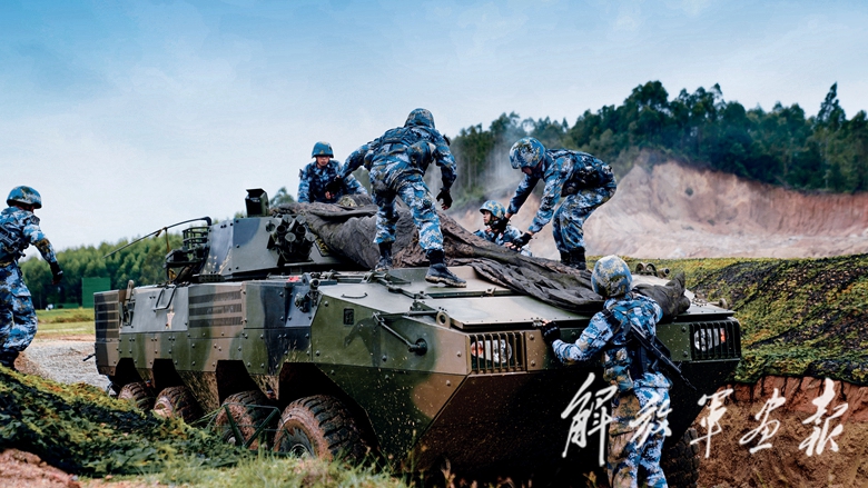 “迅速到達(dá)×號地域,進(jìn)行疏散隱蔽!”隨著導(dǎo)調(diào)員一聲令下,海軍陸戰(zhàn)隊某旅班長李志陽迅速組織人員登車,向目標(biāo)區(qū)域行進(jìn)。霎時間,演練場上鐵甲轟鳴,硝煙彌漫,一場機(jī)步班戰(zhàn)術(shù)綜合演練拉開戰(zhàn)幕。