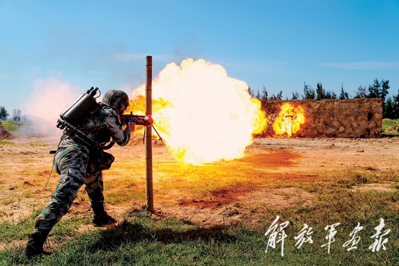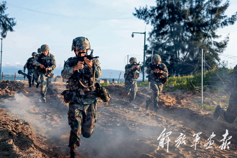 閩南山地,天剛微亮,陸軍第73集團(tuán)軍某兩棲合成旅一場(chǎng)合成營(yíng)紅藍(lán)山地攻防對(duì)抗演練驟然打響。藍(lán)軍依托有利地形在通路一線(xiàn)設(shè)置重重障礙,修建反坦克雷場(chǎng)、阻絕墻、防裝甲車(chē)壕溝。紅軍指揮員、合成二營(yíng)營(yíng)長(zhǎng)朱錦河根據(jù)先遣偵察組實(shí)時(shí)傳回的情報(bào),命令火力分隊(duì)進(jìn)行壓制射擊,指揮縱深突擊隊(duì)利用火炮策應(yīng)及地形掩護(hù),迅速向“敵”陣地發(fā)起沖擊……這是1個(gè)月來(lái)該營(yíng)參加的第二場(chǎng)實(shí)兵對(duì)抗演練。
