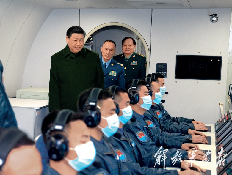在外場機(jī)棚,習(xí)近平聽取師基本情況和主戰(zhàn)裝備情況介紹。某型特種機(jī)是空中信息作戰(zhàn)的重要裝備,習(xí)近平登上該飛機(jī),進(jìn)入任務(wù)艙察看任務(wù)系統(tǒng),了解特種機(jī)工作流程和執(zhí)行任務(wù)情況。習(xí)近平強(qiáng)調(diào),現(xiàn)代戰(zhàn)爭中,制信息權(quán)成為贏得戰(zhàn)爭勝利的關(guān)鍵。要加快發(fā)展先進(jìn)裝備,加緊培養(yǎng)專業(yè)人才,加強(qiáng)針對性對抗性訓(xùn)練,推動新質(zhì)戰(zhàn)斗力加速提升。