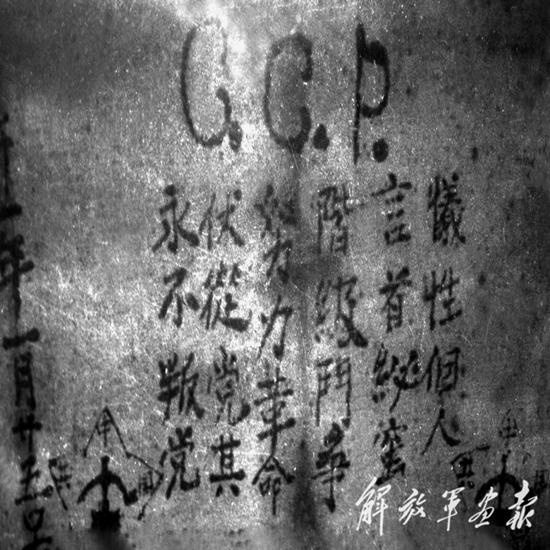 毛澤東組織“紅一連”6名新黨員入黨時(shí)的誓詞。