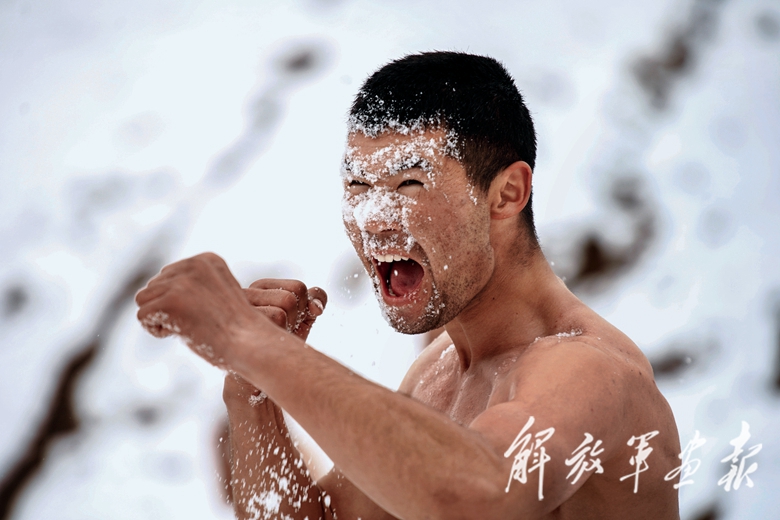 特戰(zhàn)隊(duì)員剛剛結(jié)束10公里武裝越野,緊接著便迎接雪道推車、抗寒訓(xùn)練等課目的挑戰(zhàn)。他們脫去上衣,用血肉之軀在冰雪大地上摸爬滾打……雪浴、搏擊、倒功、匍匐、體能等課目輪番上陣,不斷挑戰(zhàn)官兵身心極限。