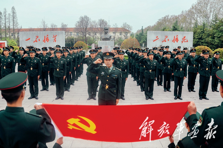 “我志愿加入中國共產黨,擁護黨的綱領……”前不久,陸軍第71集團軍某旅野外駐訓場上,“弘揚‘兩不怕’精神模范連”指導員戴凡博帶領連隊黨員面向黨旗,莊嚴宣誓。誓言鏗鏘,聲震云霄,新時代紅色傳人斗志昂揚。
