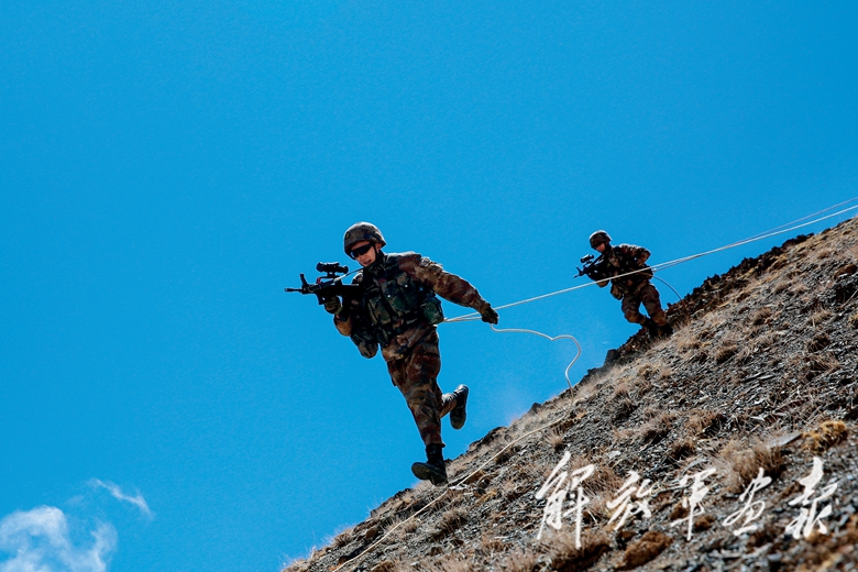 快速機(jī)動(dòng)30余公里后,官兵展開反恐作戰(zhàn)演練。狙擊手張宏陽(yáng)肩扛狙擊槍,迅速占領(lǐng)海拔5100米的制高點(diǎn)。在大風(fēng)呼嘯中,他一邊忍耐缺氧導(dǎo)致的呼吸急促,一邊調(diào)整位置做好射擊準(zhǔn)備。無人機(jī)實(shí)施空中偵察,戰(zhàn)斗小組迅速研究作戰(zhàn)方案,狙擊手聞令精準(zhǔn)狙殺目標(biāo)。隊(duì)員們隨即攀登滑降、隱蔽接“敵”,兵分多路趁勢(shì)圍剿,班組密切協(xié)同成功制服 “恐怖分子”……