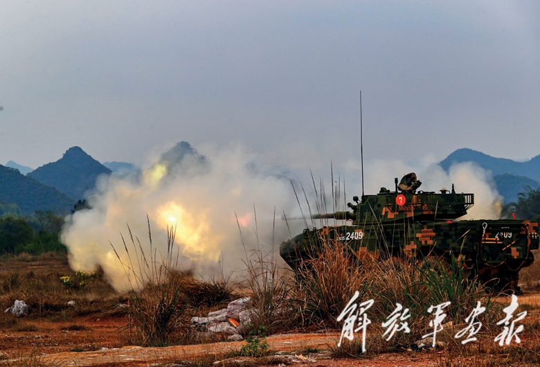 “全車注意,正前方發(fā)現(xiàn)‘?dāng)场乇ぃ羞M(jìn)殲滅!”春日,桂北某綜合訓(xùn)練場,陸軍第75集團(tuán)軍某旅二營女子裝甲突擊車連一場實(shí)彈演練鏖戰(zhàn)正酣,40余名女兵操縱列裝不久的某新型裝甲突擊車先后完成行進(jìn)間對(duì)固定目標(biāo)、行進(jìn)間對(duì)移動(dòng)目標(biāo)等多課目戰(zhàn)斗射擊,有效縮短了戰(zhàn)斗力生成周期。